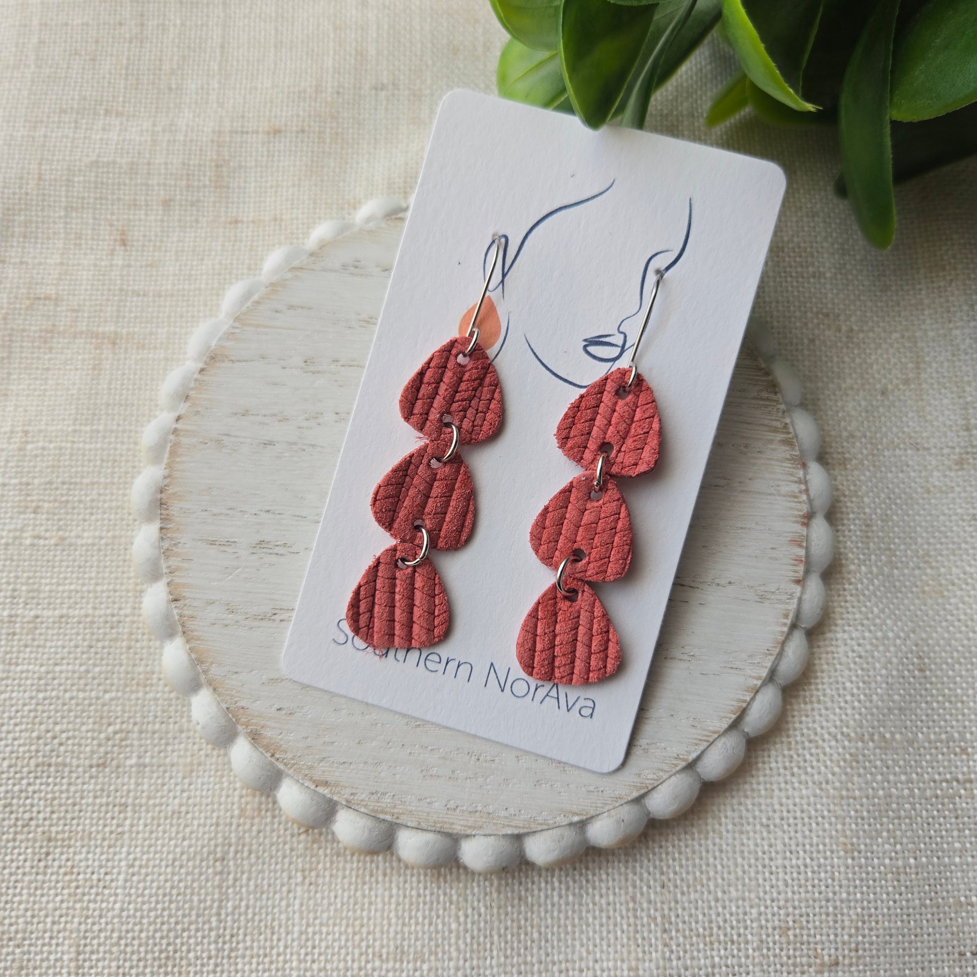 It is best to store your leather earrings hanging or on a flat surface. If they start to curl, place under a heavy object to flatten out.